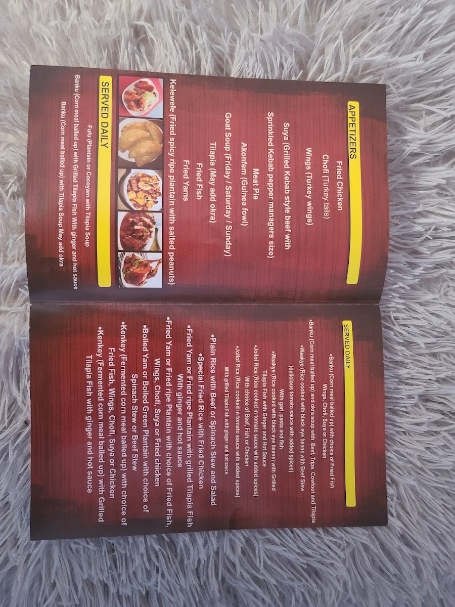 - Despite some minor wait times, the dining experience is enhanced by a lively ambiance reminiscent of Ghana.